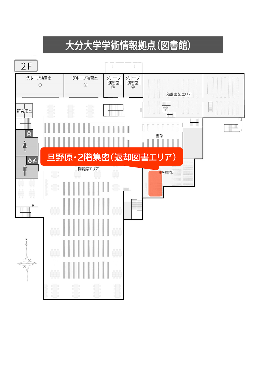 旦野原・2階集密(返却図書エリア)